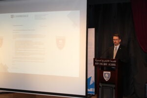 Now, back to the atmosphere of the event itself. Standing there, with Tamara (another representative from The Print), it was hard not to recognise the majesty of the occasion. Sixth formers (and a few year 11s) walked into school with their parents eagerly following behind them; the Head Girl and Head Boy were stationed by the Mousetrap door, welcoming newcomers and guiding the students and parents to their respective seats. It was only a few minutes until Mr Marchant stood up on stage and began addressing the audience and calling students to get their awards. The roaring sound of applause rose after every name was called, not weakening once.